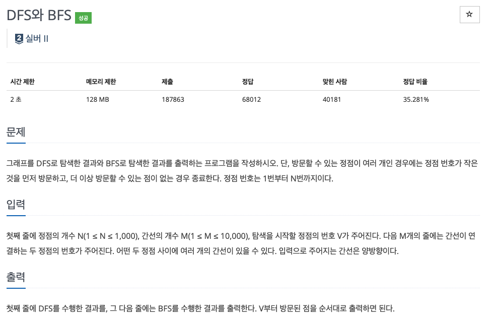 문제 : https://www.acmicpc.net/problem/1260