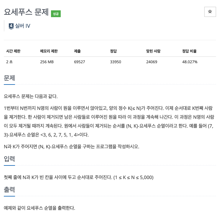 문제 : https://www.acmicpc.net/problem/1158