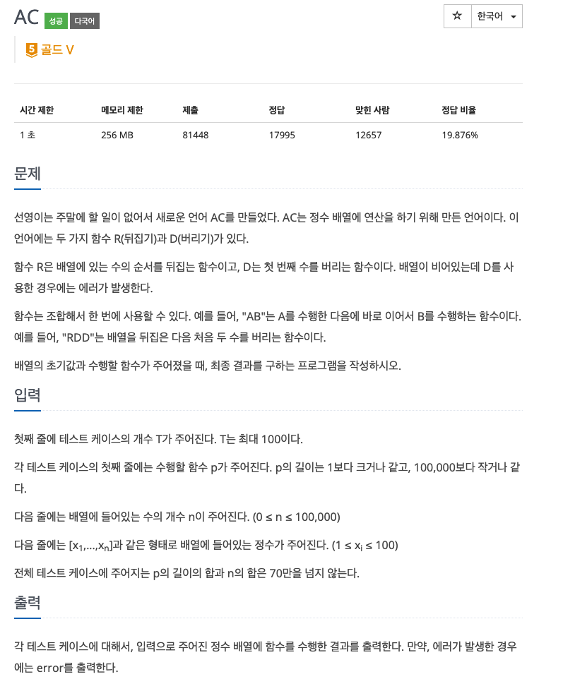 문제 : https://www.acmicpc.net/problem/5430