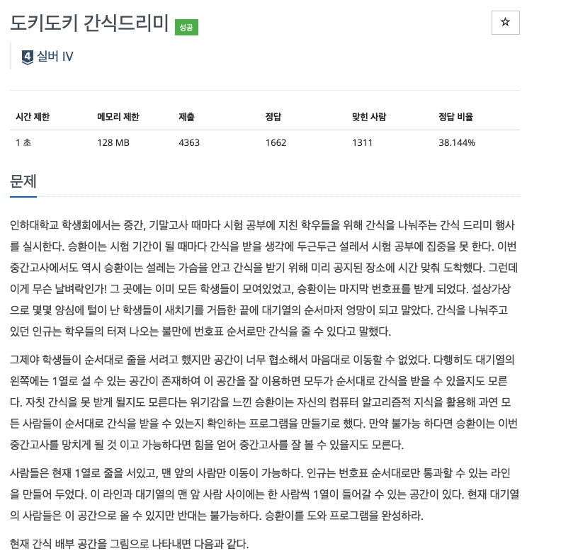 문제는 1번부터 N번까지 번호표가 존재하고 번호표 순서대로 간식을 받을 수 있는지 없는지 여부를 출력하면 된다.