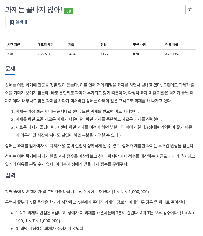 이때는 새로운 과제가 주어지므로 따로 입력을 받는다.