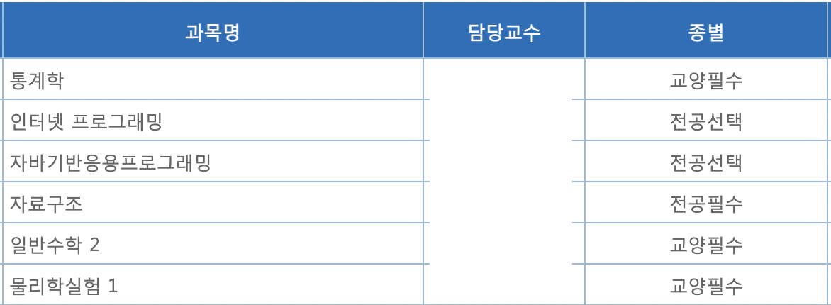 이번 학기에 수강하게 된 과목들이다. 3전공 2수학 1물리... 총 17학점이다. 원래 교양 한 과목을 더 껴서 19학점이나 20학점을 맞추려고 했지만 그동안 굳은 뇌가 너무 벅찰까 봐 이번 학기는 적응하자는 의미로 17학점만 신청했다.