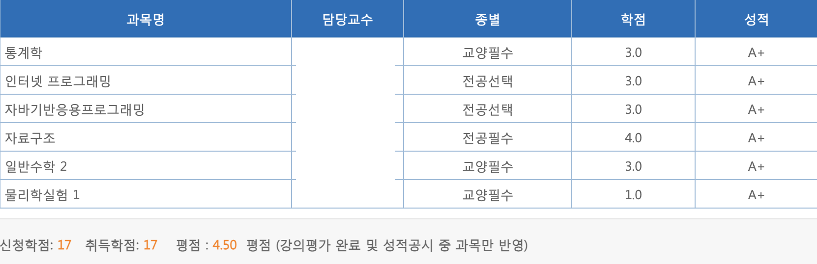 정말 운이 좋게도 올 A+를 받을 수 있었다. 성적을 받고도 약간 믿기지 않는다.