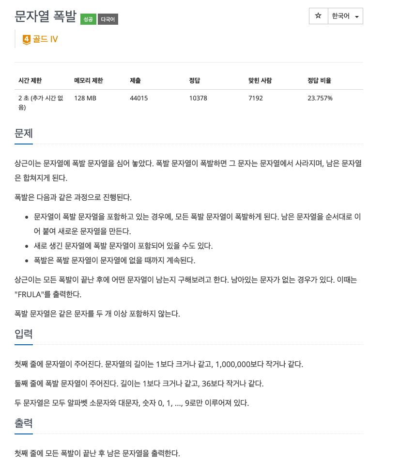 9935번: 문자열 폭발