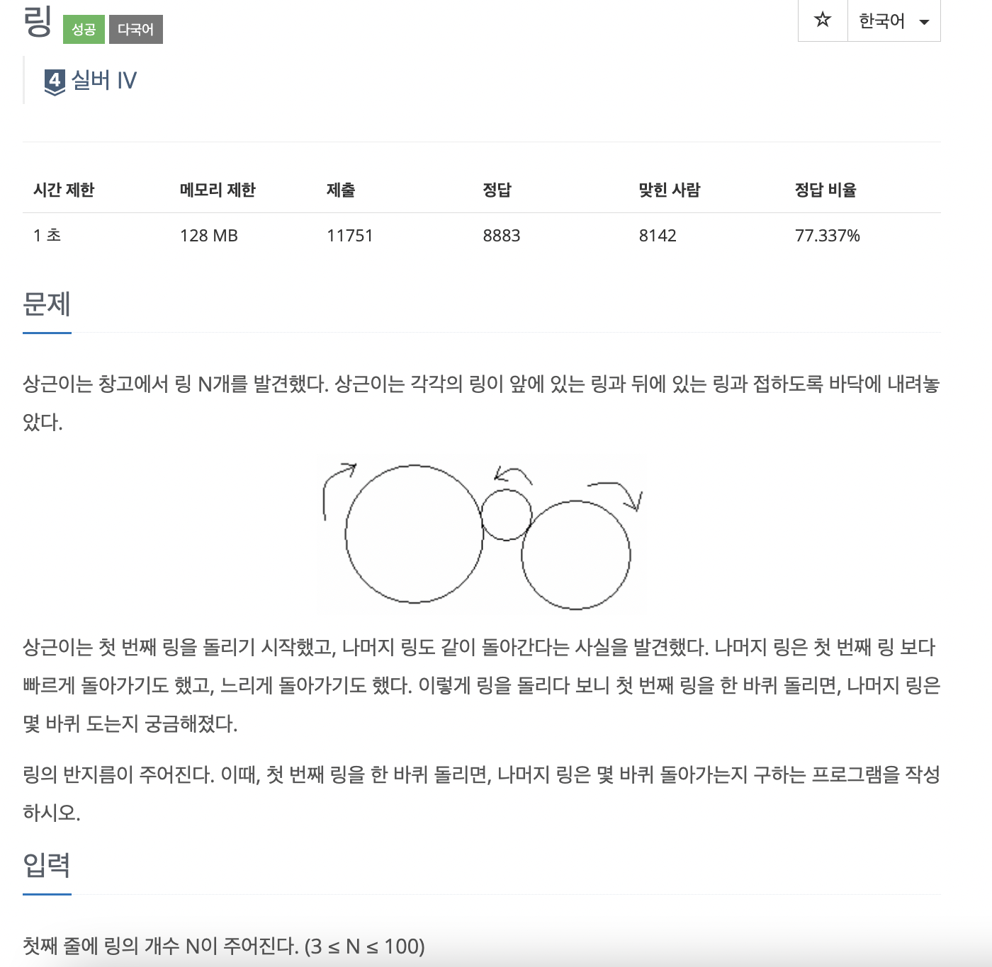 링의 개수 n을 입력 받는다.