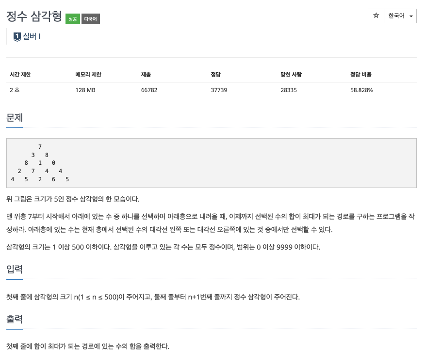 문제 : https://www.acmicpc.net/problem/1932
