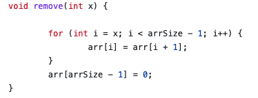 1. 삭제될 인덱스부터 배열의 크기 - 1까지 for문을 순회하며 한 칸씩 앞쪽으로 값들을 이동시킨다.