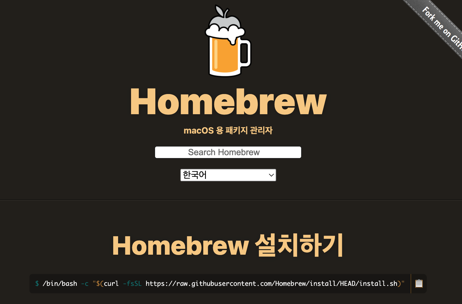 먼저 Homebrew사이트에 접속하셔서 하단에 있는 명령어를 복사하거나