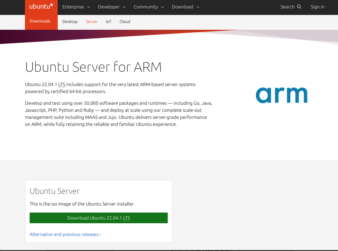 "Download Ubutu 22.04.1 LTS" 버튼을 클릭해서 설치받는다.