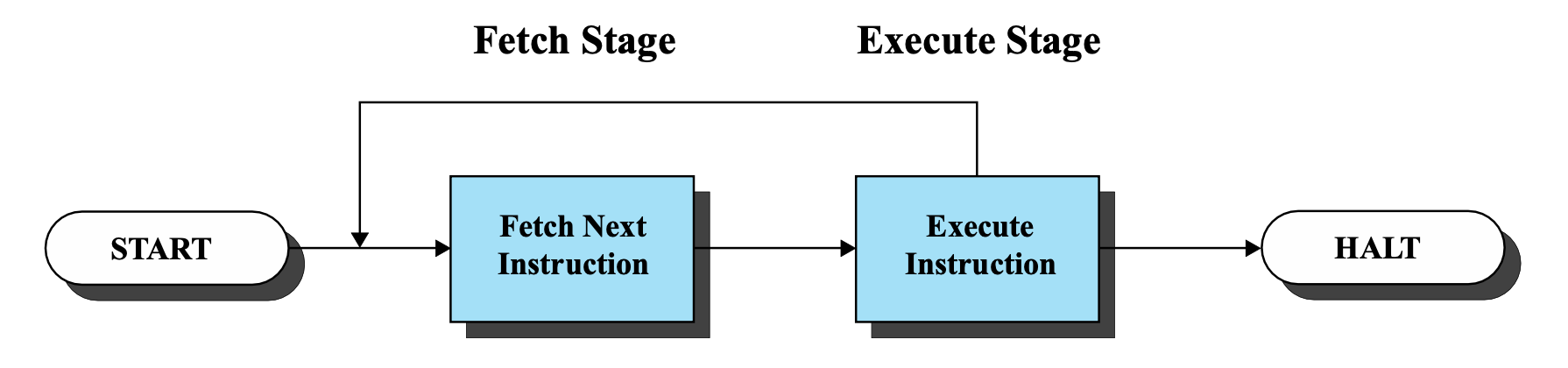 - 처리기는 메모리로부터 한 번에 하나의 명령어를 반입(fetch)하여 수행한다.