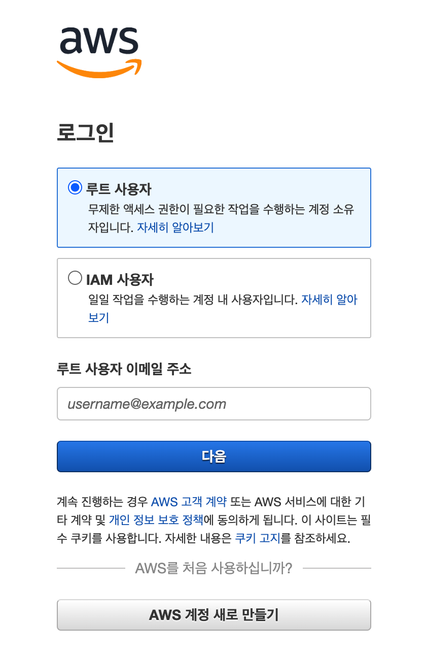 AWS에서 제공하는 서비스를 사용하려면 당연히 AWS 회원가입 후에 로그인을 해야 합니다.