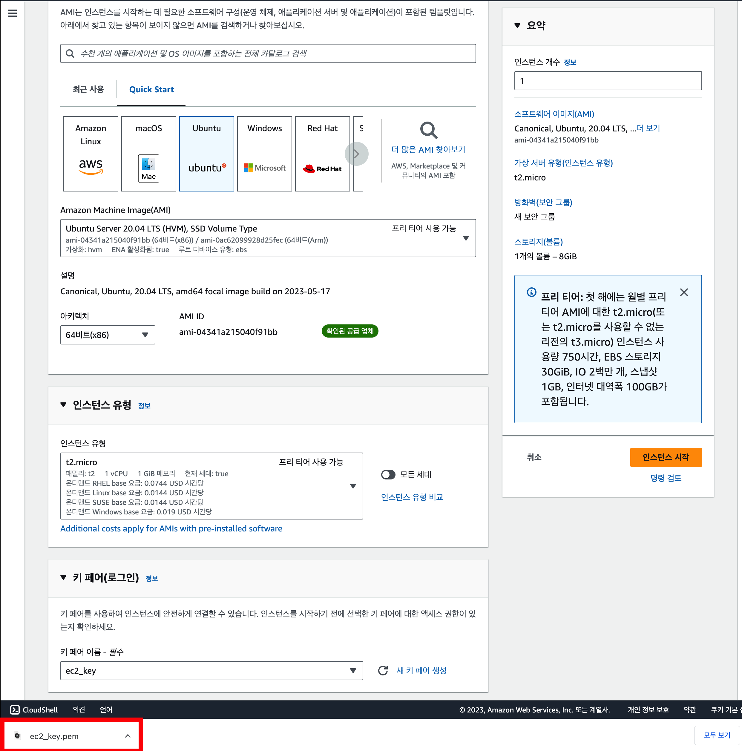 그러면 자동으로 입력하신 키 페어 이름으로 된 키 파일이 다운로드됩니다.