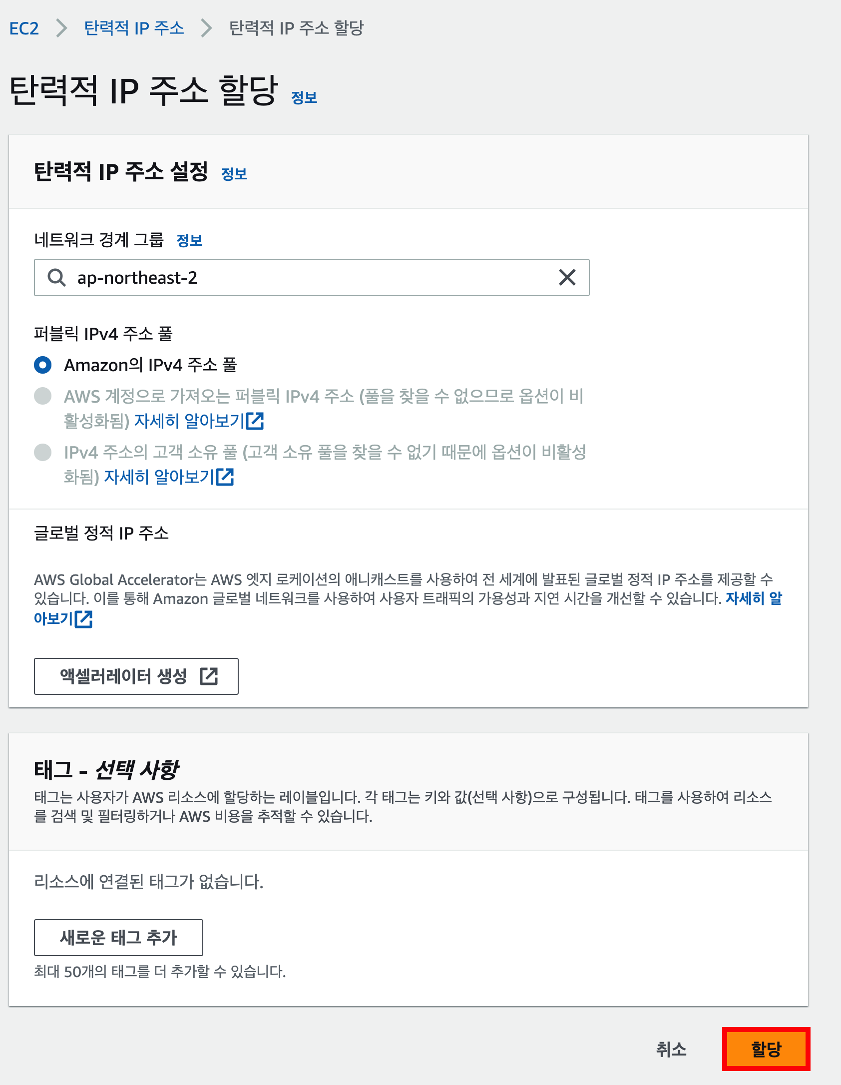 건드리는 것 없이 "할당"을 클릭해 주세요~