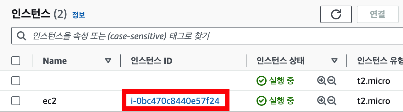 연결이 완료됐다면, 잘 연결 됐는지 확인해 봐야겠죠? 인스턴스 ID를 클릭해 세부 정보로 들어갑니다.