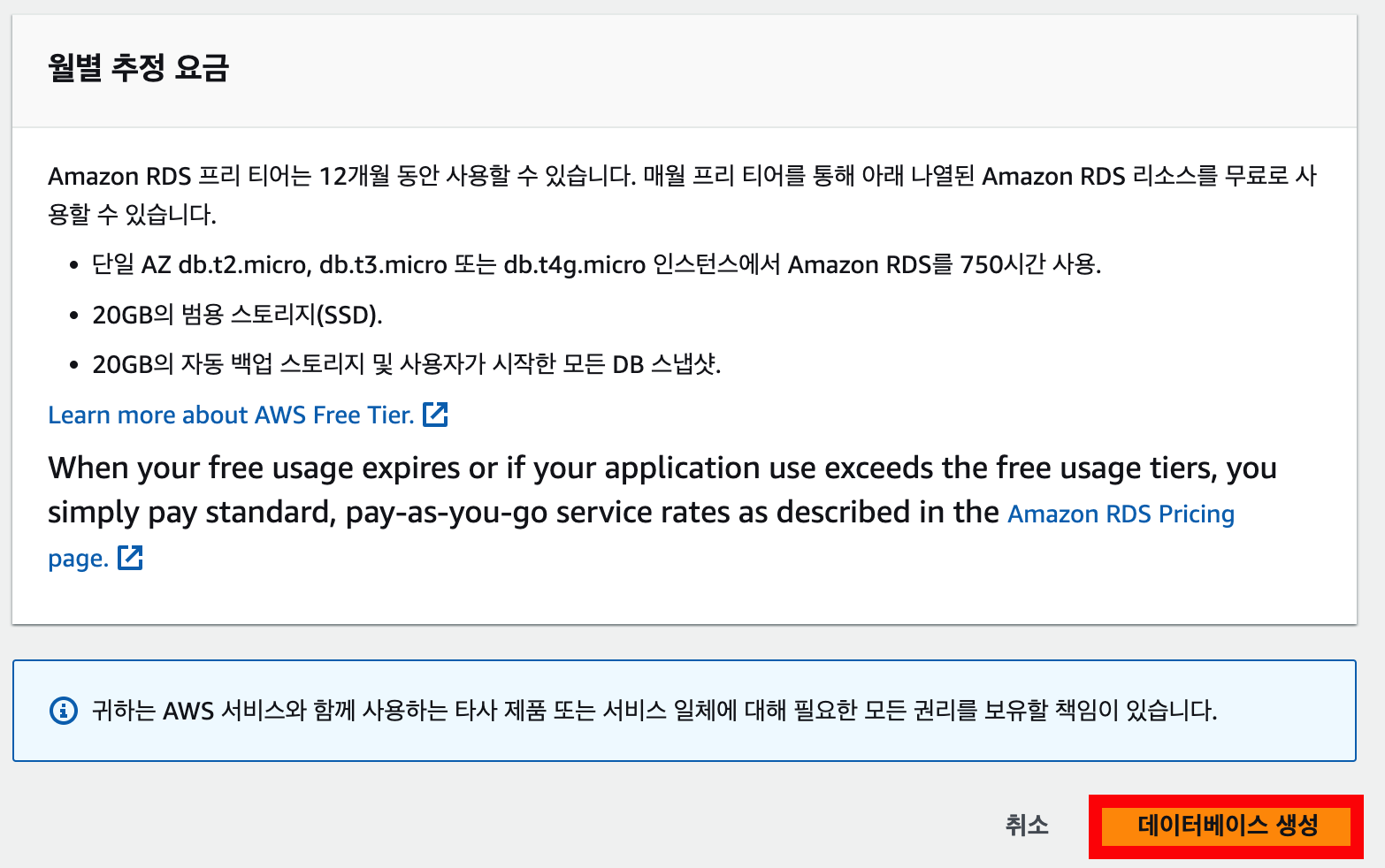 그다음 "DB 서브넷 그룹 생성"을 클릭해 주세요.