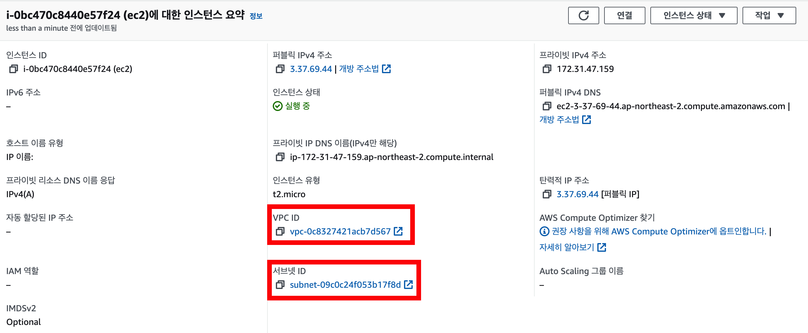 EC2와 RDS를 연동해야 하니, RDS와 연결할 EC2 인스턴스의 정보를 파악해야 합니다.