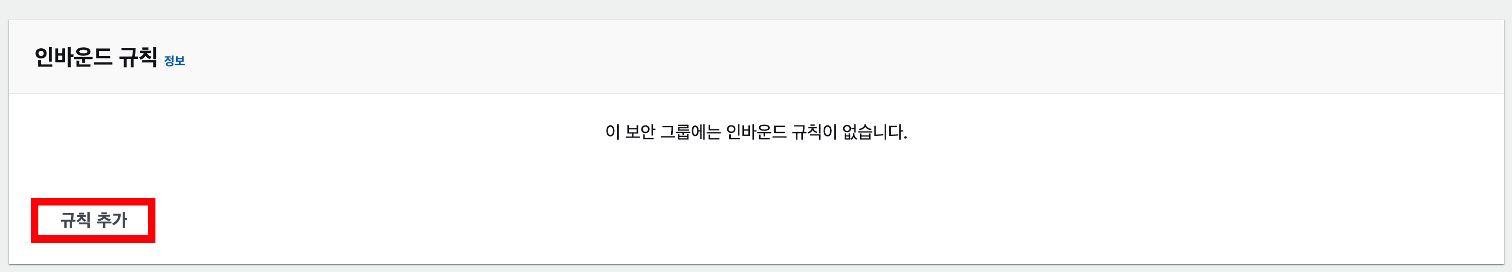 인바운드 규칙을 추가해 봅시다. 규칙 추가를 클릭해 주세요.
