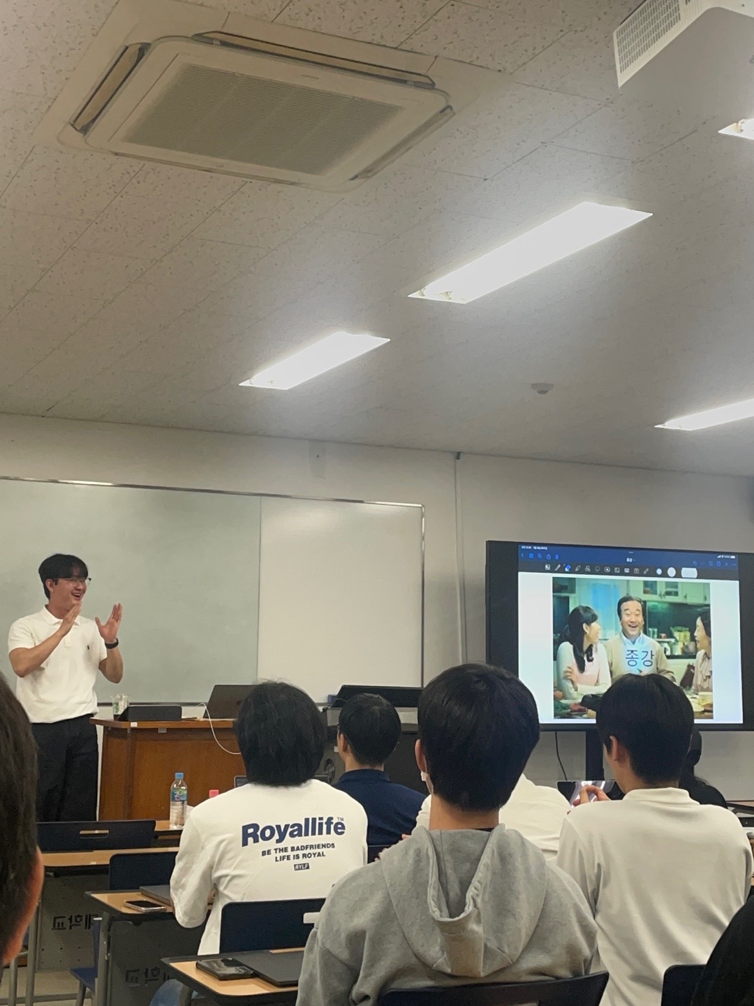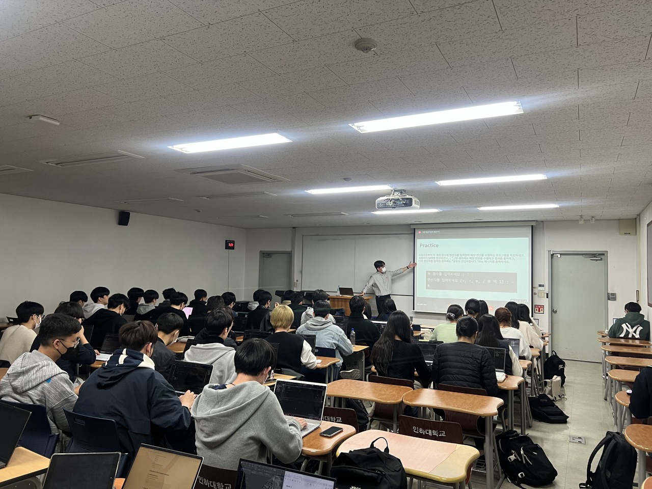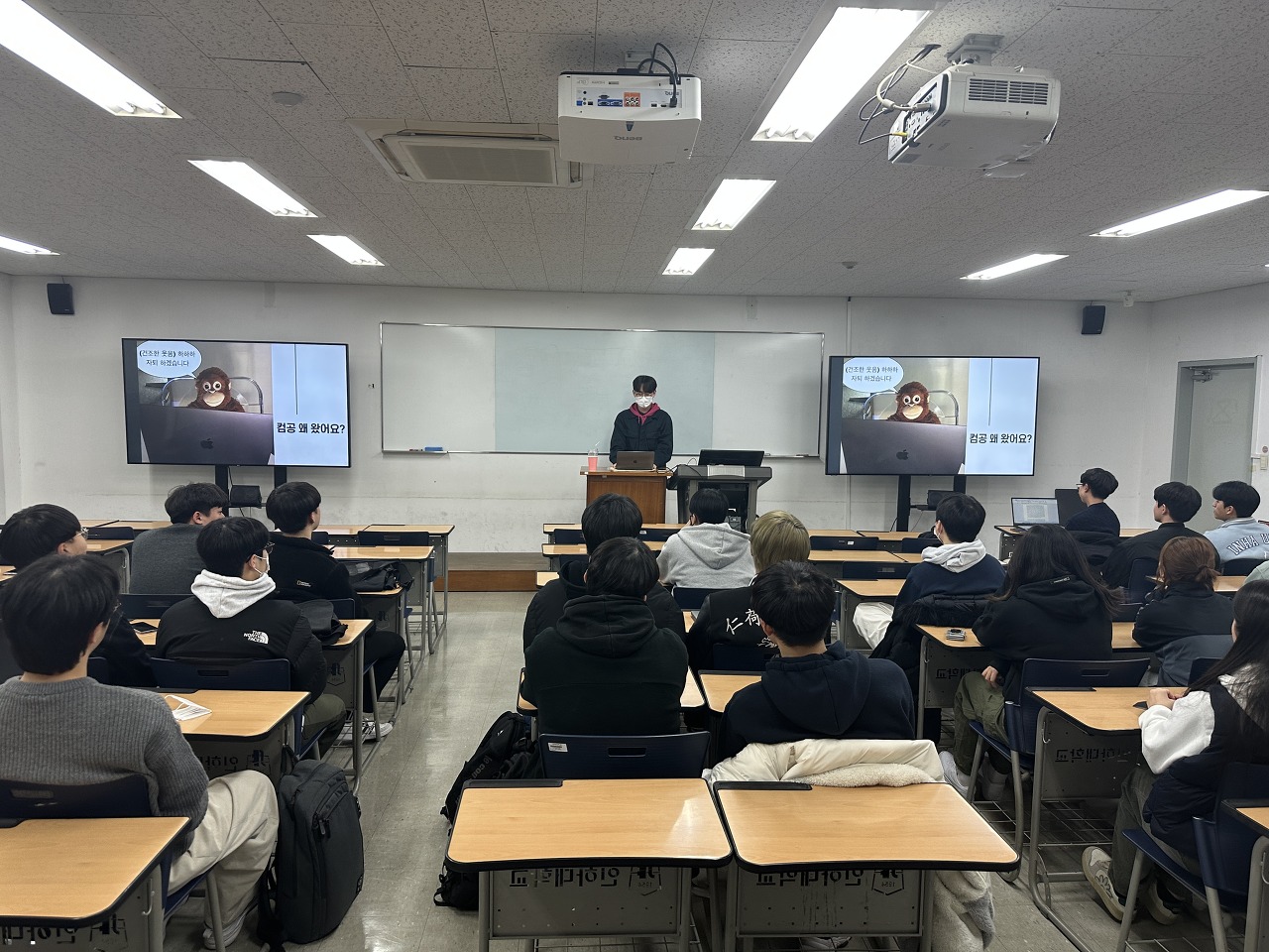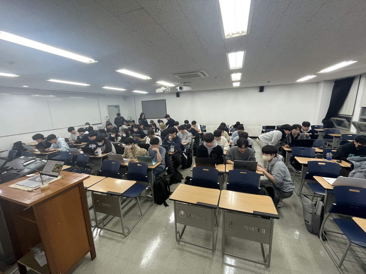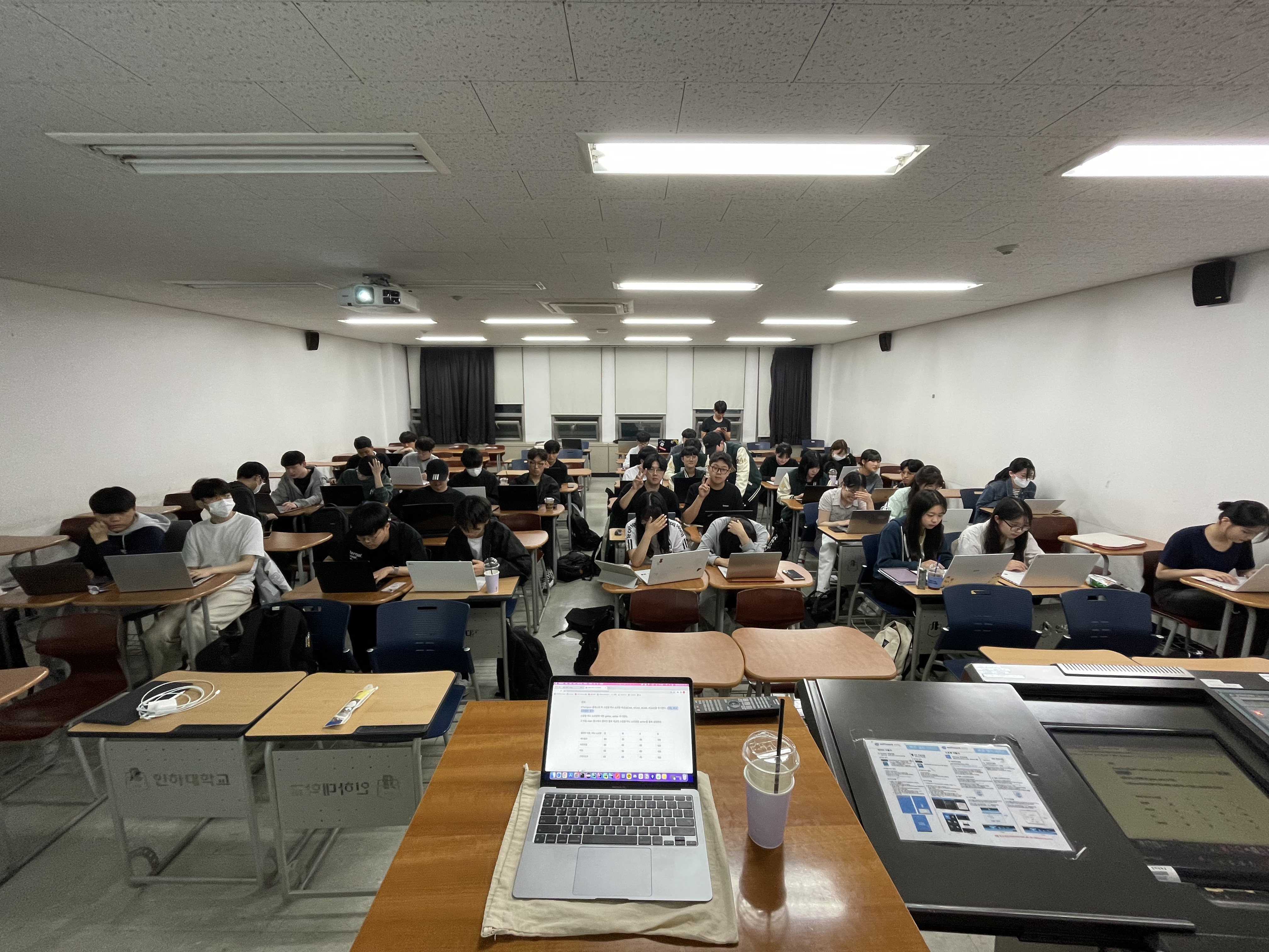 매주 수요일 2~3시간 정도 오프라인으로 스터디를 진행했습니다. 전공 수업 한 분반 급의 인원수라 교내 강의실을 빌렸습니다.