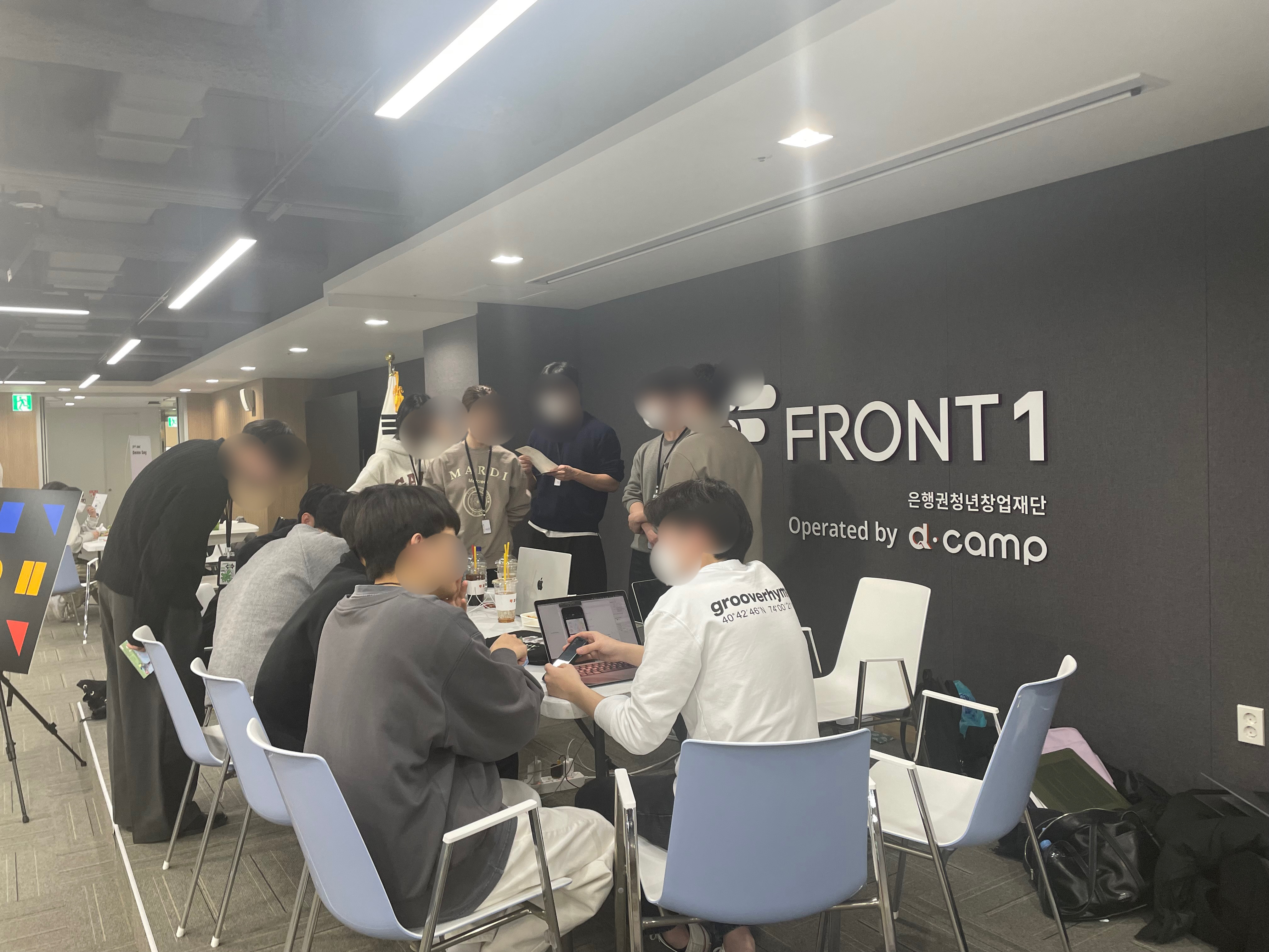 데모데이는 프론트원에서 진행했습니다. 저희 팀 부스에 찾아와 주시는 분들에게 서비스를 설명드리고, 핸드폰에 앱을 설치해 드려 체험해 보실 수 있도록 했습니다!!