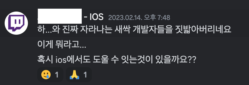 그래도 팀원들끼리의 사이가 좋고 모두 좋으신 분들이라 좌절도 잠시.. 모두 이 사건을 해결하려고 노력했습니다. 밖에 외출 중이시던 분들도 빠르게 작업을 할 수 있도록 집으로 복귀하시고,, iOS 팀원 분들도 도와드릴 것이 없냐고 여쭤보셨습니다..