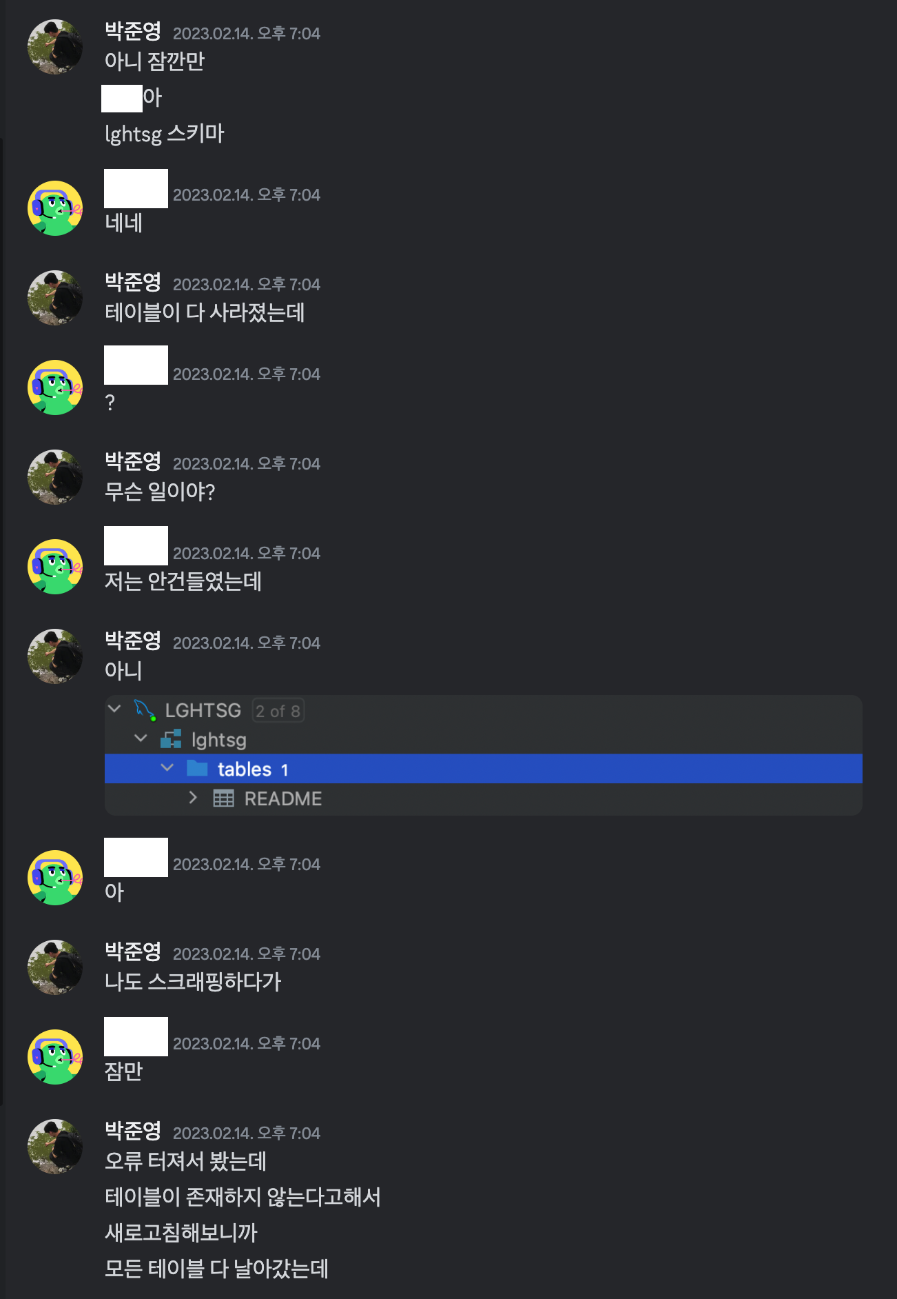 엥? 테이블이 왜 없지? 하고 확인했더니 정말 테이블이 없었습니다...