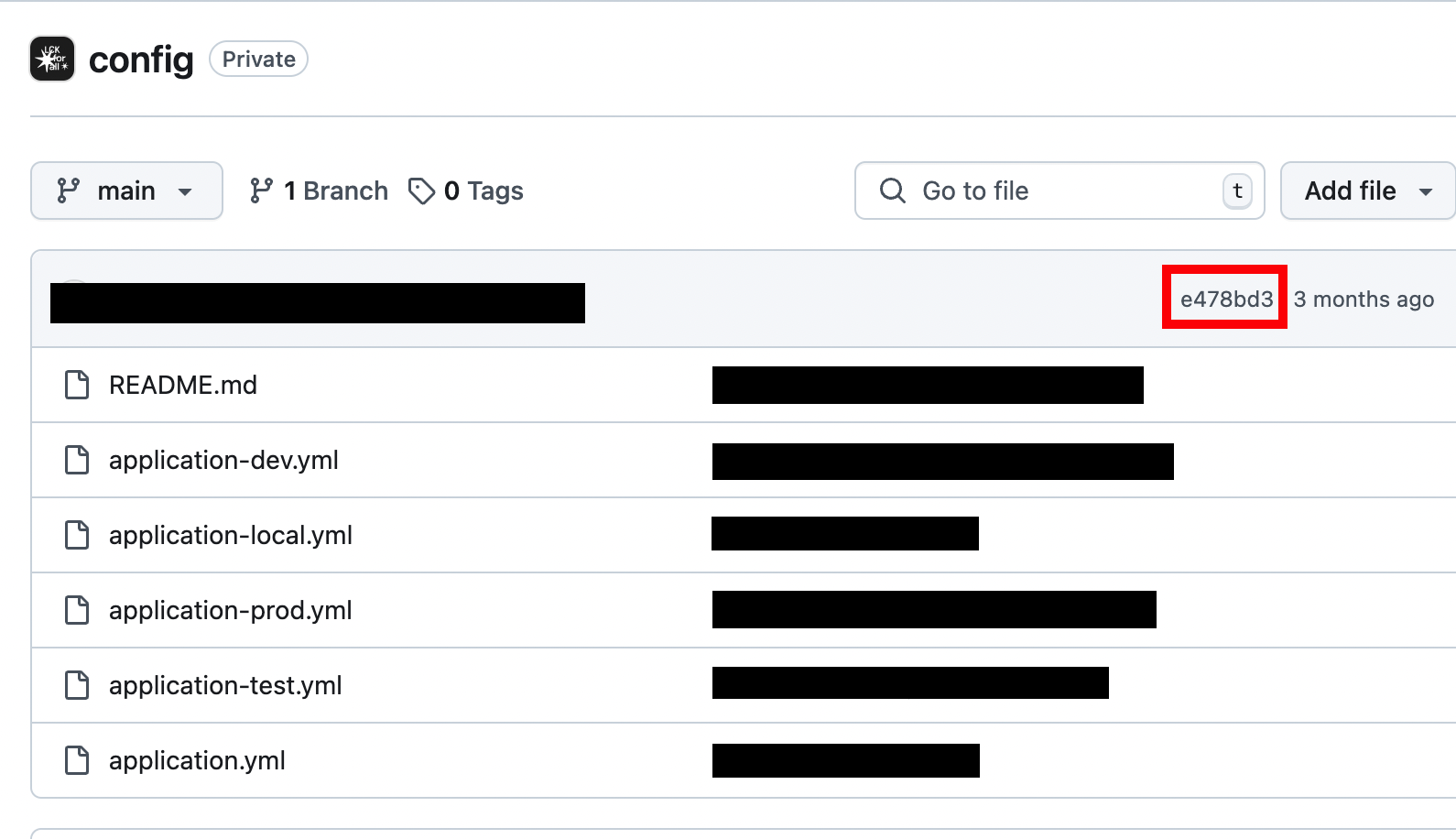 이때, config 옆 "@e478bd3"은 private repo의 특정 커밋 버전을 참조한다는 뜻입니다.